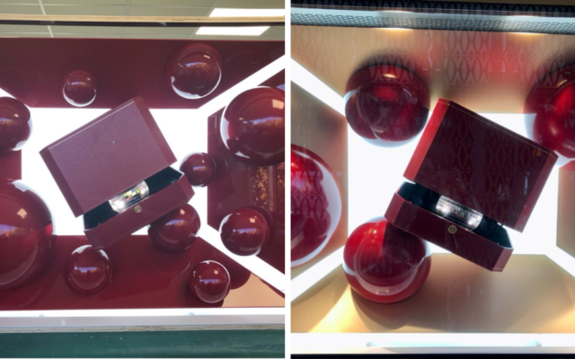 Pour Calvin Klein, Poly Expo a réalisé une vitrine intérieure pour leurs magasins en aéroport et dans les galeries marchandes. Ici, c’est la couleur dorée qui s’impose dans les présentoirs, évoquant une ambiance précieuse propre aux décorations de Noël.